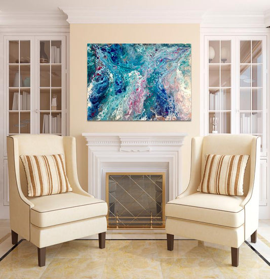 Abstract original acrylic painting in aqua and pink, Bi-pride LGBTQ Art