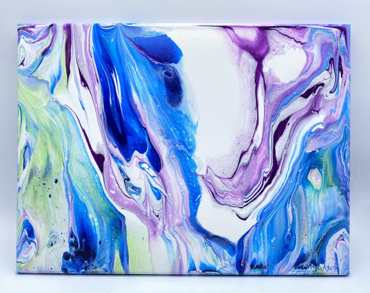 “Burbling,” Abstract Fluid Art Acrylic Painting | Blue Purple Aqua Peach Salmon | 16" x 20" Gallery-Wrapped Canvas