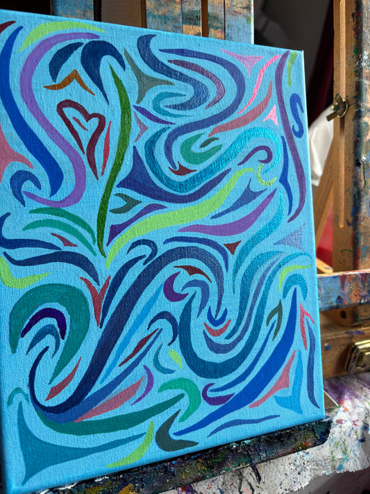 "Whale", Abstract Acrylic Painting 8"x10" Experiment with Paint Markers