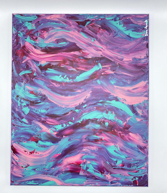 Abstract original acrylic painting in aqua and pink, Bi-pride LGBTQ Art