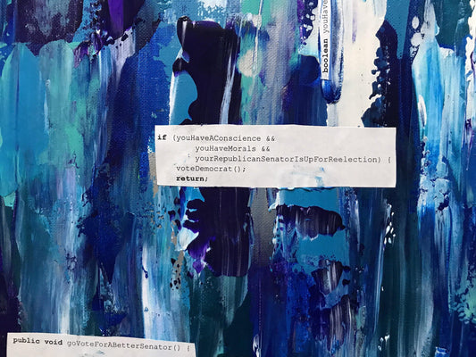 Abstract original acrylic painting in aqua and pink, Bi-pride LGBTQ Art