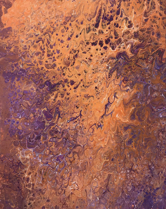 “Joy,” Fluid Art Acrylic Painting in Purple and Orange, Abstract Colorful Art