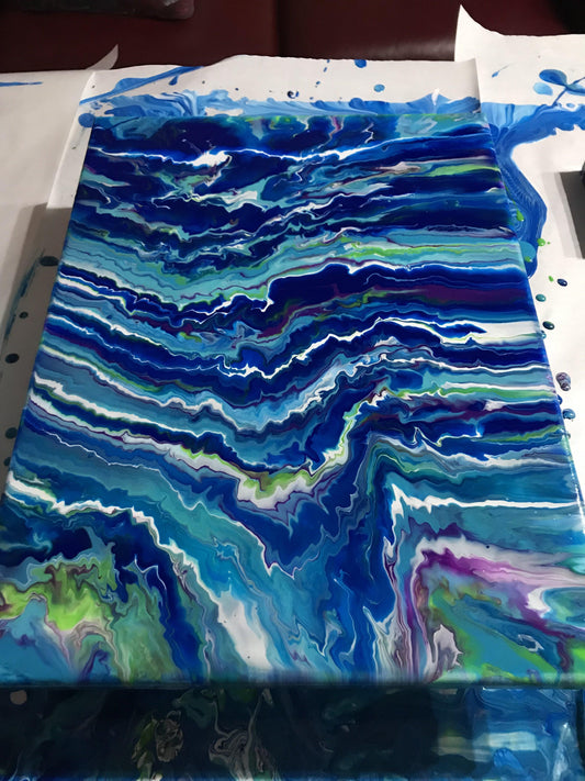 “Mosaic,” Original Acrylic Painting Fluid Abstract Art Blue Ocean / Sea / Wave Art