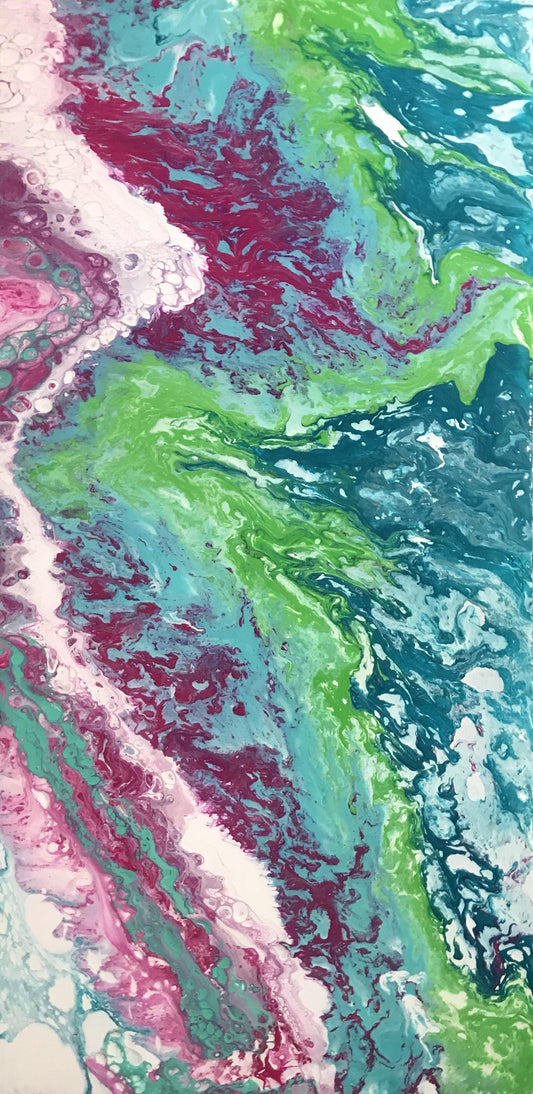 Fluid Art Original Acrylic Painting with Resin in Blue, Magenta and White. Glossy Brilliant Finish