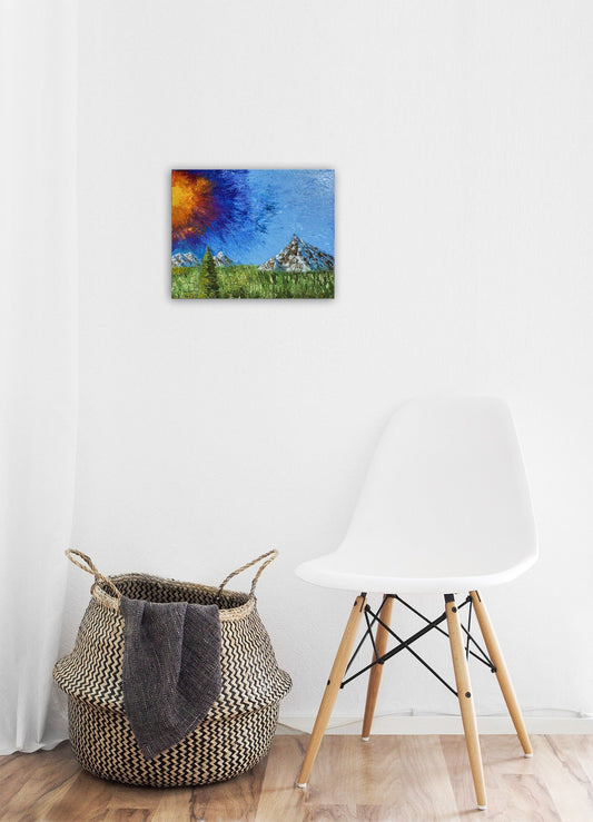 Aurora Night Sky and Mountains Original Oil Painting
