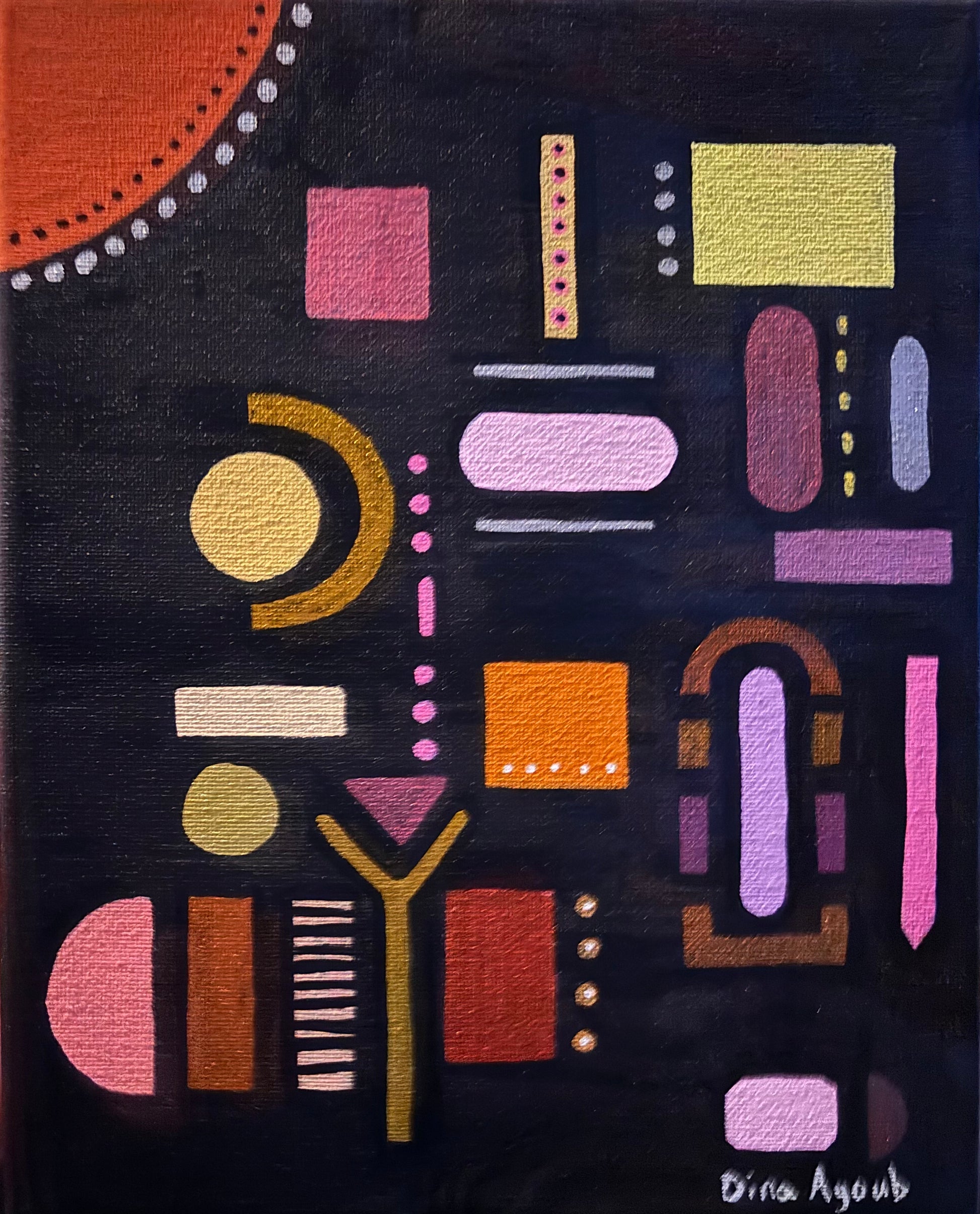 "Night Map", 8x10" Abstract Geometric Mini Acrylic Painting